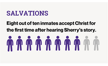 In February 2015, Sherry Sims shared her personal story of surviving domestic abuse with the female inmates of the Washington County Correctional Center in Bartlesville, Oklahoma. Sherry’s story of heartbreak and redemption through God’s love resonated deeply with the inmates. Though these women lived very different lives, they were bonded by common experiences. On that day, sixteen out of the twenty-nine attendees were moved to accept Christ.